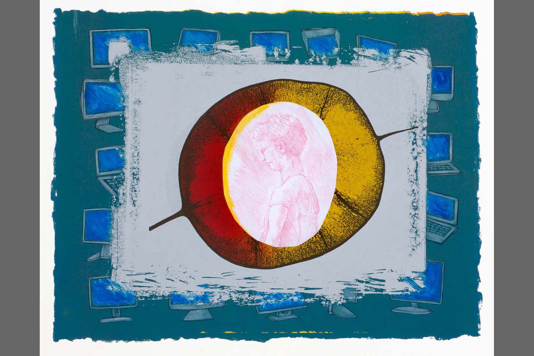 Silkscreen with Chine-colle, pencil and pastel, 13.5 x 17